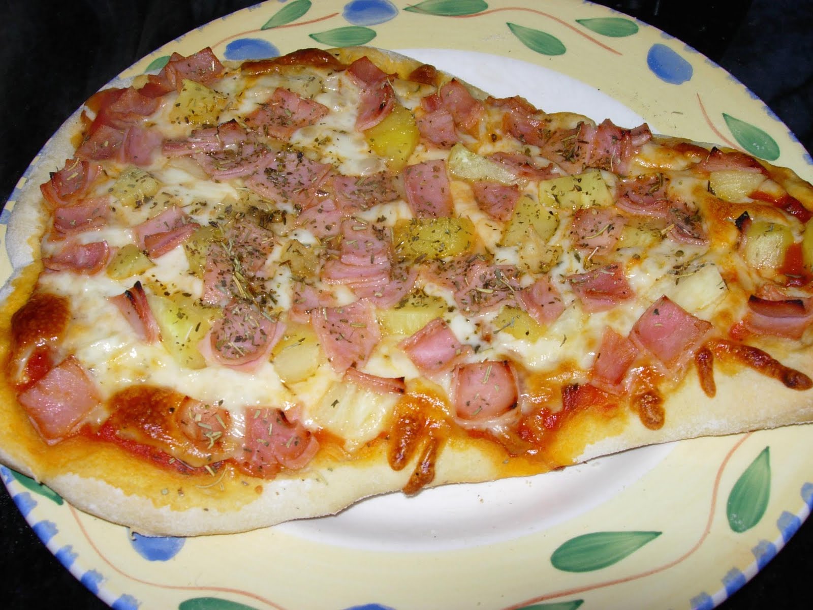 the meat-eater: tomato sauce, mozzarella, ham, pineapple